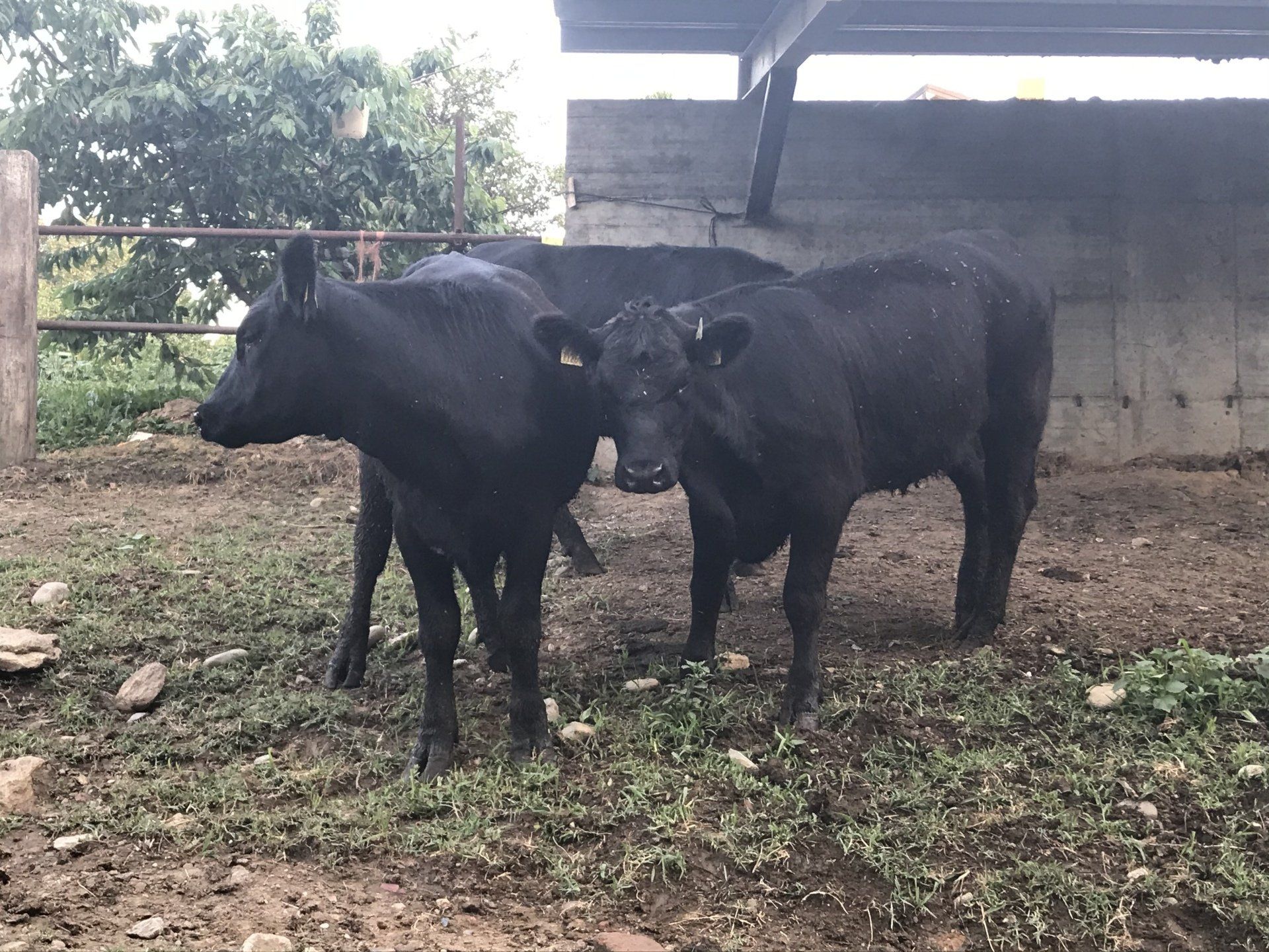 Breeding calves of the Piedmontese and Angus breeds, of various ages